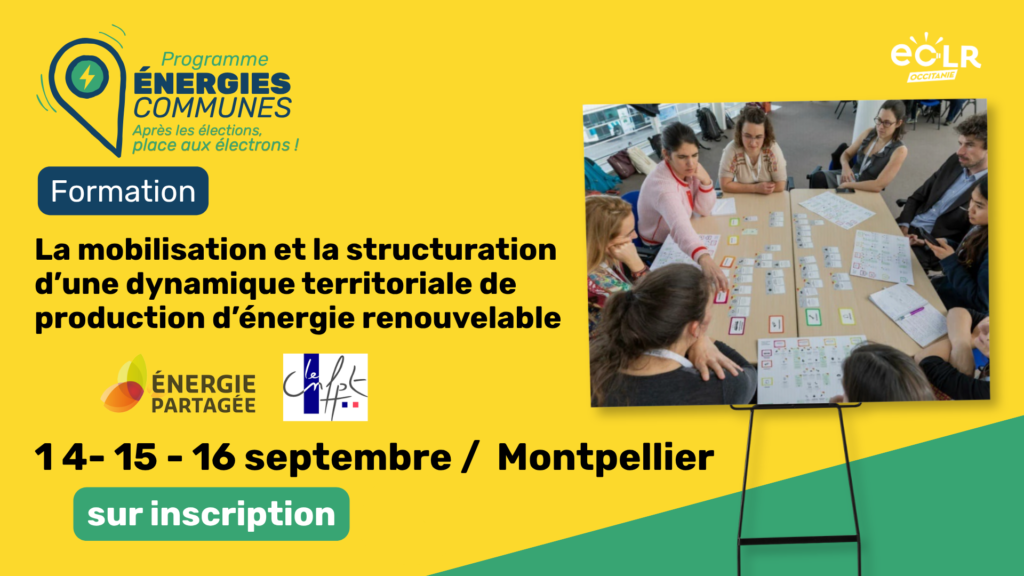 14 au 16 septembre | Stage CNFPT : La mobilisation et la structuration d’une dynamique territoriale de production d’énergie renouvelable (3 jours – Montpellier)